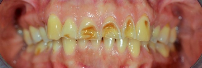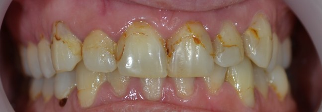 Esztétikai kezelés: tetraciklin miatt elszíneződött fogak koronákkal történő leplezése, fogak kiegyenesítése.