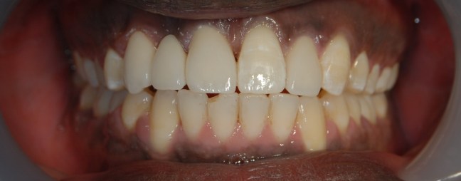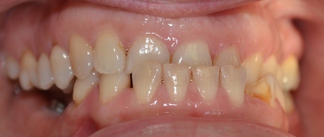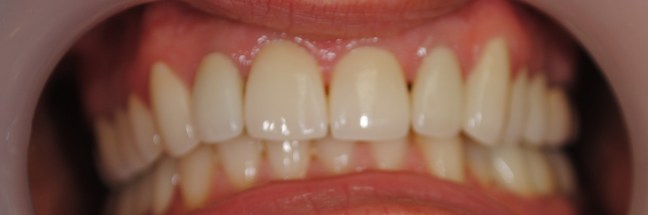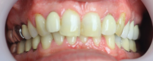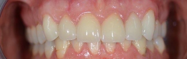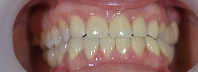 Kozmetikai és funkcionális kezelés: felső torlódott fogak kiegyenesítése, koronák enyhe kifele döntése, mélyharapás korrigálása.