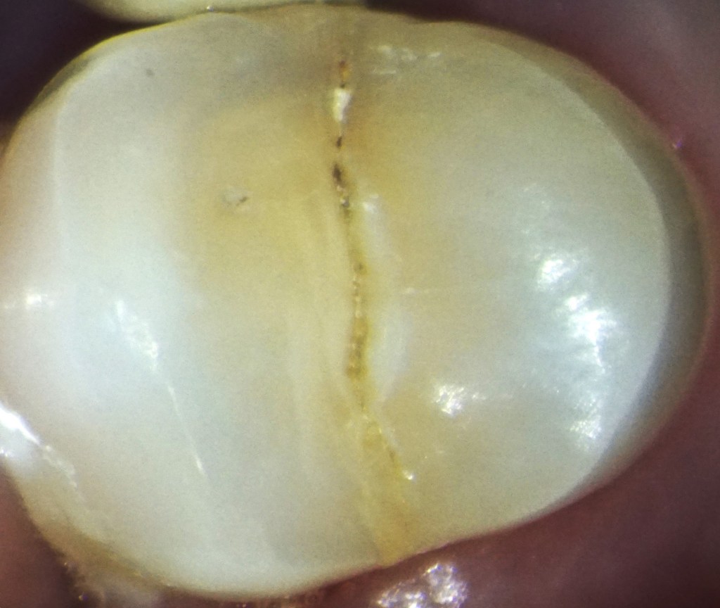 1. központi barázdában szétrepedt fog 2. ugyanezen fog idegkamrájának feltárása után a repedés mélysége is láthatóvá válik (kedvezőtlen prognózis)